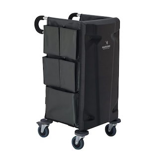 「エアロカートΣHAIKURO」は、洗練されたデザインが目を惹くメンテナンス用カート。フロントパネルにはシボ加工、サイドカバーには光沢のある生地をあしらい、ワンランク上の清掃シーンを演出します。生地には耐久性と防汚性を備えていることに加え、メンテナンスとゴミ回収を同時に行えるハイブリット仕様で、見た目だけはなく機能面にも妥協がありません。