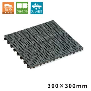 300mm角のジョイント式で、足場の広さに合わせて敷き込むことが可能。全体に敷き込んだり、必要な範囲だけの形にしたり、自由自在でコストも軽減できます。表面に細かな穴が開いた「スルータイプ」で、ゴミがマット上に溜まりません。ゴミが下に落ちない「フラットタイプ」もあり、現場の状況に合わせてお選びいただけます。