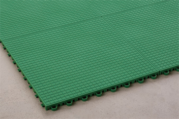 摩耗性も高く、マットの表面は耐久性の高い仕様です。持ち運びしやすい「ピースタイプ」と、広範囲に敷き込める「ランナータイプ」の2種類を用意しており、設置場所に応じて選べます。カラーは、グリーン、ブルー、グレーの3色展開です。