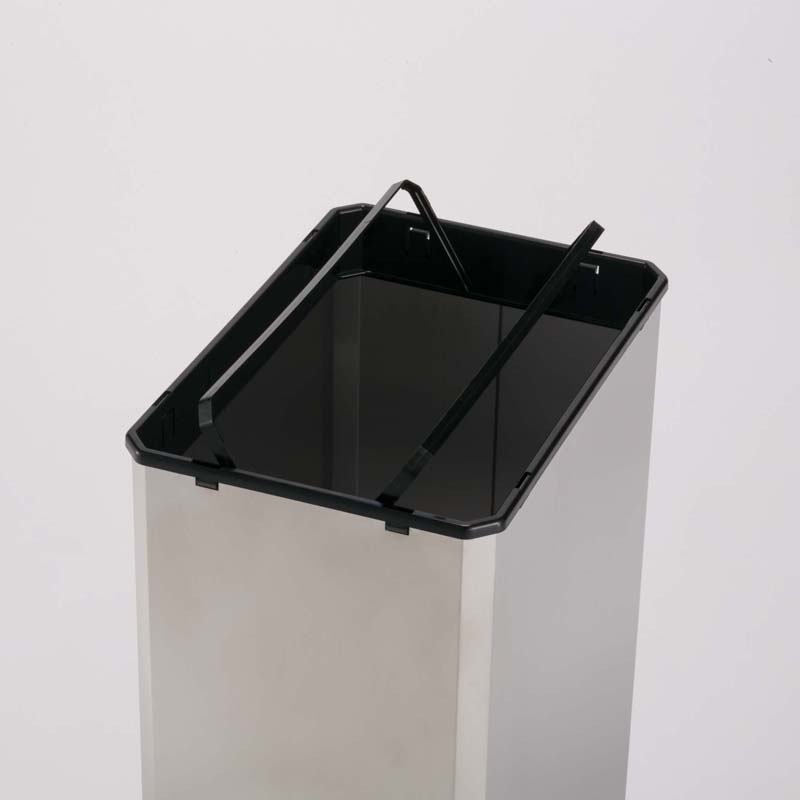 利用者にペーパータオルを丸めて捨ててもらうことにより使用済みペーパータオルが約3倍収集できるゴミ箱です。
