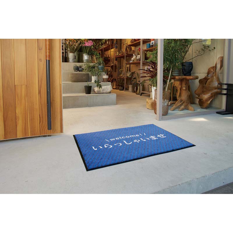 英語と日本語、両方の挨拶を取り入れたデザインでお客様を迎える除塵性能を備えたマット